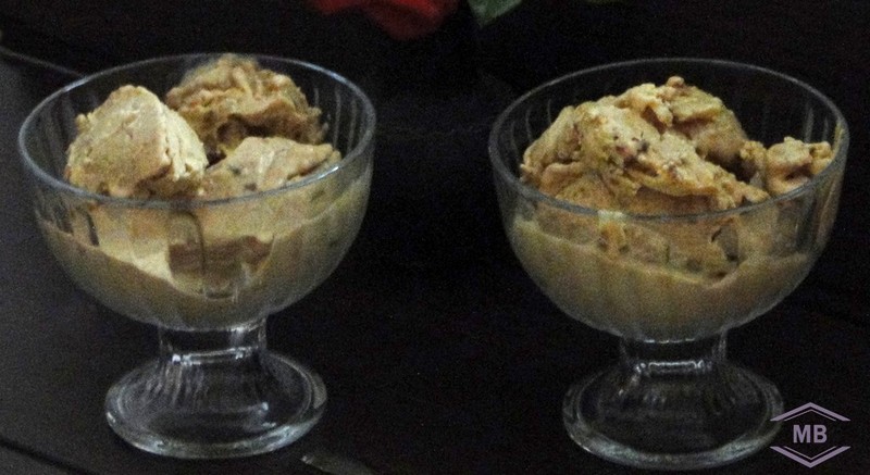 Подаём мороженое, разложив его по креманкам. Украсить тёртым шоколадом. вафлями или полить сиропом, мёдом.