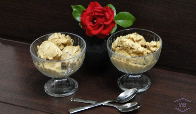 Если мороженицы нет, переливаем массу в контейнер и ставим в морозильник. Каждый час размешиваем массу миксеров, чтобы было как можно меньше кристалликов льда. Такие манипуляции нужно провести 3-4 раза.