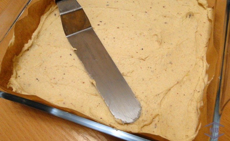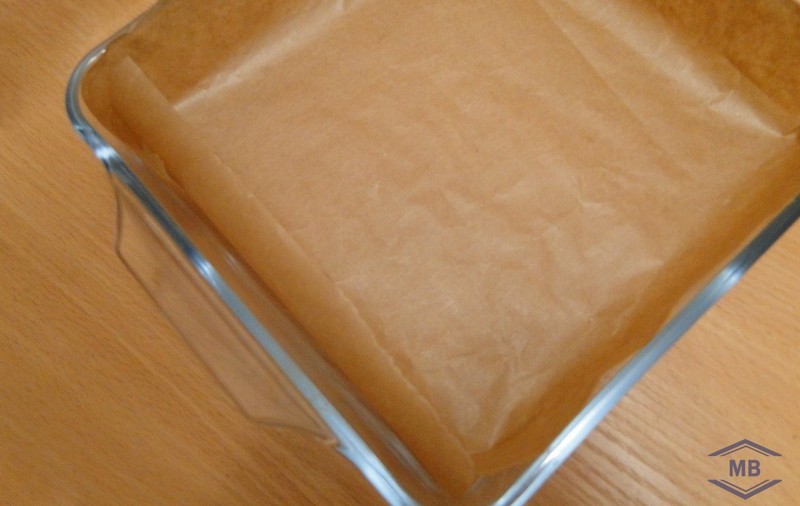 Дно формы для выпекания застилаем пергаментом. Равномерно распределяем тесто по форме. Выпекаем в духовке при 180 градусах 30-40 минут.