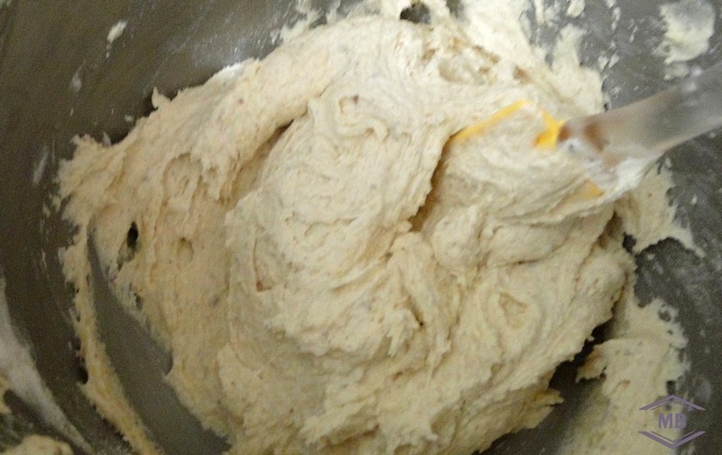 Добавляем в массу просеянную муку, а также подготовленные имбирь, корицу, гвоздику, мускатный орех. Снова всё аккуратно вымешиваем до однородности.