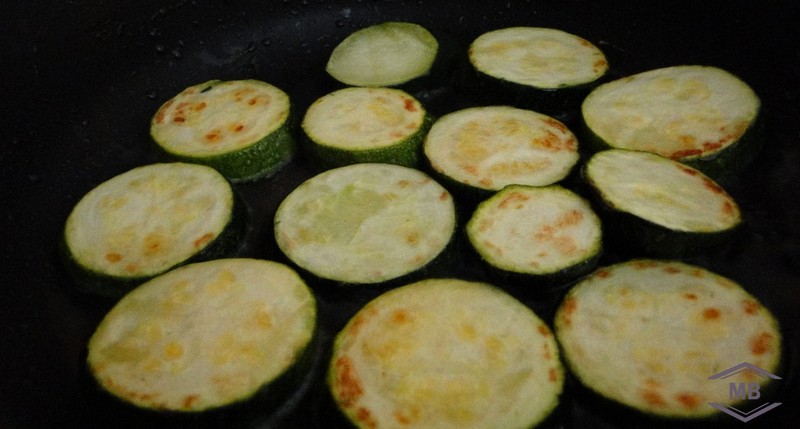 Солим их, перемешиваем и даём постоять 10 минут. Обжариваем кольца кабачков на небольшом огне на сковороде с растительным маслом с двух сторон до золотистого цвета.