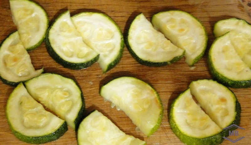 Чистый молодой кабачок нарезаем кольцами толщиной в пол сантиметра.