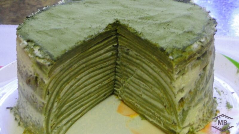 рецепт десерт блинный торт без выпечки матча 00010Торт из блинов с зелёным чаем «Матча» в разрезе Торт из блинов с зелёным чаем «Матча» в разрезе Previous Image