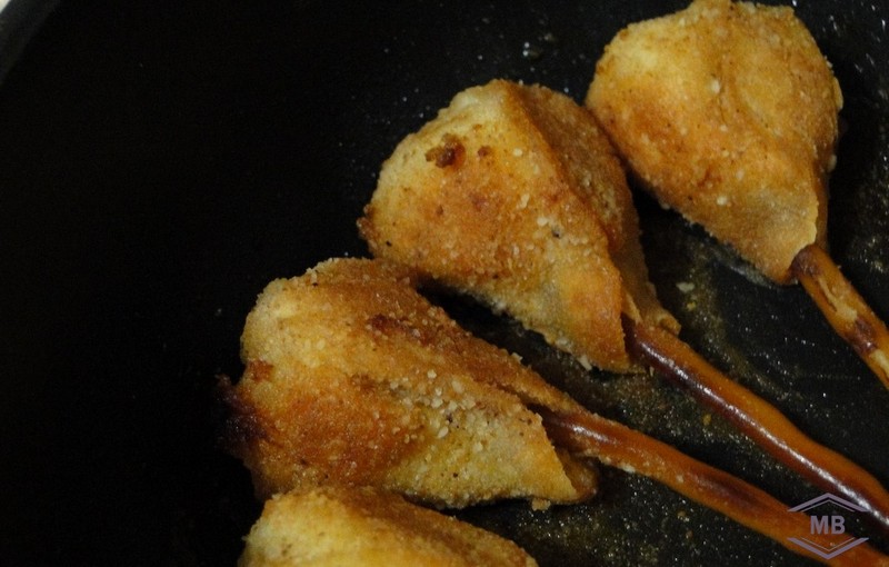 Готовые «куриные ножки» отправляем на бумажные салфетки, чтобы стекли излишки жира.