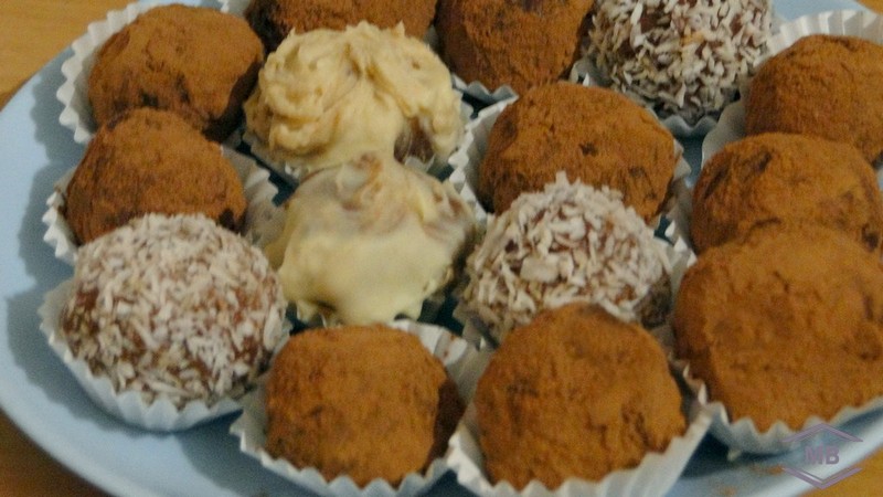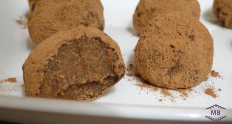 Обваливаем заготовки в какао-порошке. Можно поэкспериментировать и обмакнуть заготовки в шоколад, измельчённые орехи.