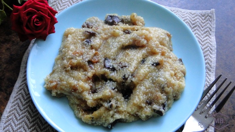 Ингредиенты: 600 мл воды, 100 г кукурузной крупы, 50 г изюма, 50 г чернослива, 50 г сливочного масла, щепотка соли.