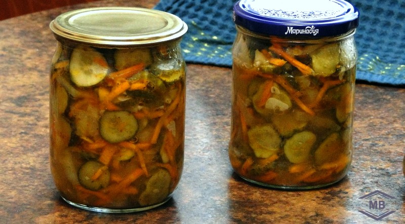 Когда банки с салатом остынут, переворачиваем и храним в тёмном прохладном месте.