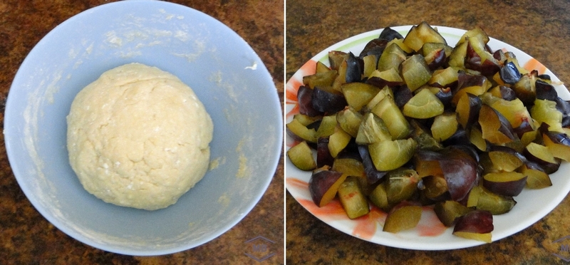 Ингредиенты: 300 грамм муки, 200 грамм творога, 50 мл молока, 50 мл растительного масла, 50 грамм сахара, 8-10 грамм разрыхлителя, 1 яйцо, щепотка соли, ванилин — по желанию. Начинка: 500-600 грамм слив, 3 столовые ложки сахара, 1 столовая ложка корицы.