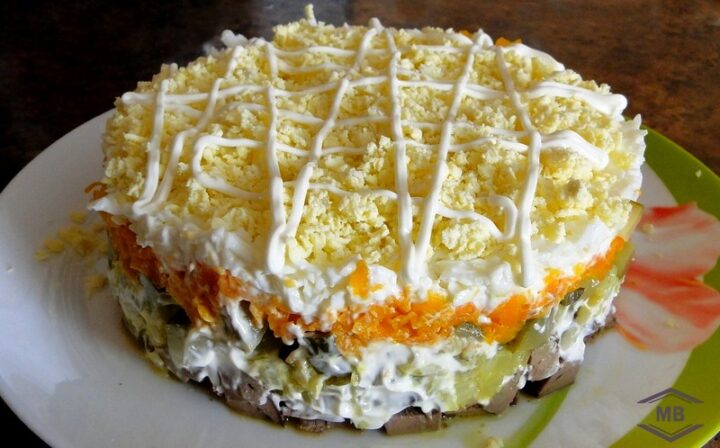Сытный слоёный салат «Печёнкин» для праздничного застолья МирВкуса, Салаты Сытный слоёный салат «Печёнкин» для праздничного застолья