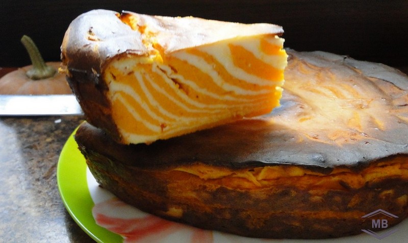 Чизкейк из тыквы и творога восхищает своей бело-оранжевой структурой и великолепным вкусом!