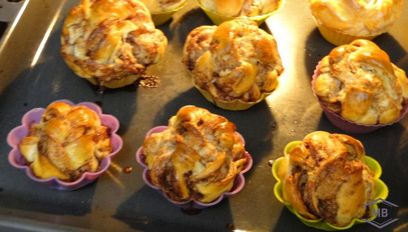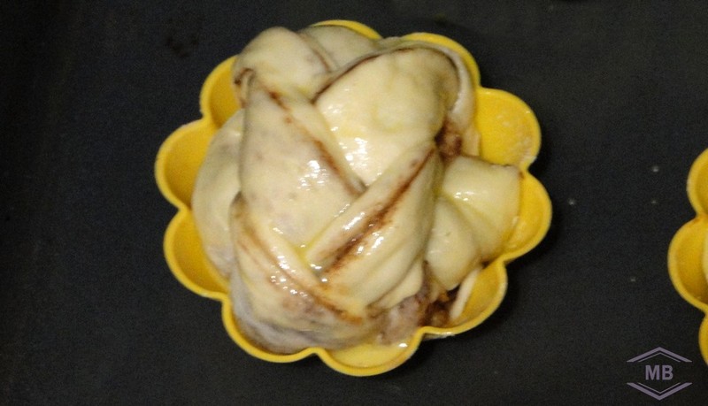 Каждую» «косичку» сворачиваем в шар и выкладываем в формы для кексиков. Если формочки силиконовые, то ничем их не смазываем. Другие формы смазываем растительным маслом.