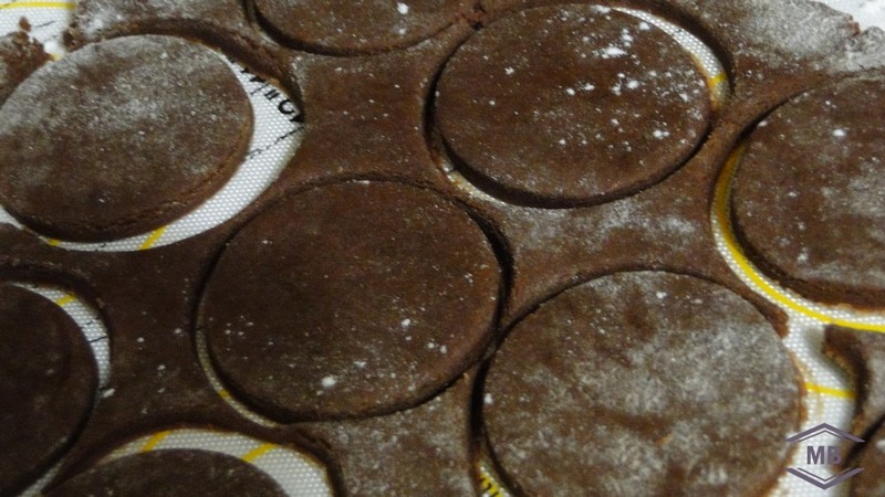 Перекладываем заготовки на противень с пекарской бумагой. Из теста должно получиться около 30-32 заготовок печенья «Орео». Можно, при желании, на заготовках выдавить формочками узор.