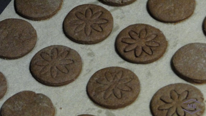 Ингредиенты: Тесто: 100 грамм муки, 75 грамм сливочного масла, 50 грамм сахарной пудры, 25 грамм какао-порошка, 1 желток (1 столовая ложка молока или воды), пол чайной ложки разрыхлителя — по желанию, щепотка соли. Крем: 80 грамм сливочного масла, 80 грамм сахарной пудры, ваниль.